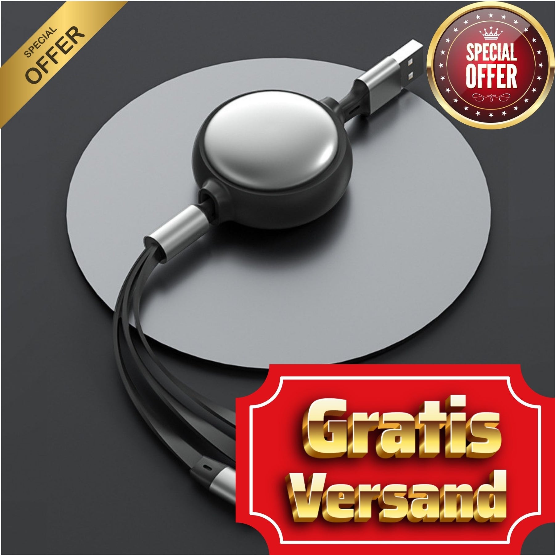 3-in-1-Sparwunder: Kaufen Sie nie wieder einzelne Ladekabel! Der geschätzte Wert von drei separaten, hochwertigen Ladekabeln liegt bei 79,99€. Sie erhalten alle Anschlüsse in einem Kabel zum absoluten Tiefpreis.