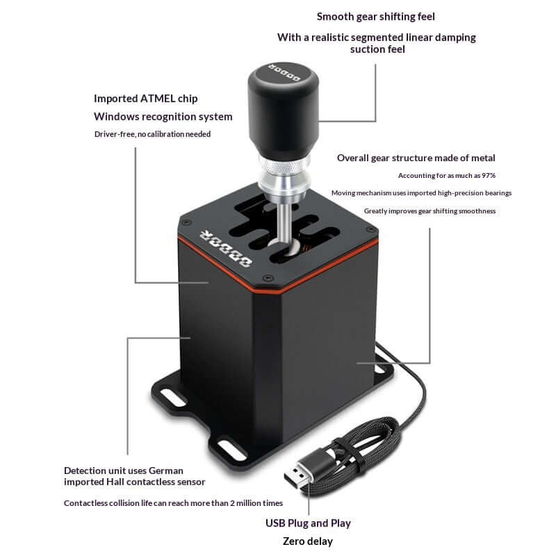 Egal, ob du in Euro Truck Simulator 2 die Gänge durchschaltest oder in Forza Horizon sportlich unterwegs bist – dieser Shifter liefert ein knackiges, mechanisches Feedback bei jedem Gangwechsel.